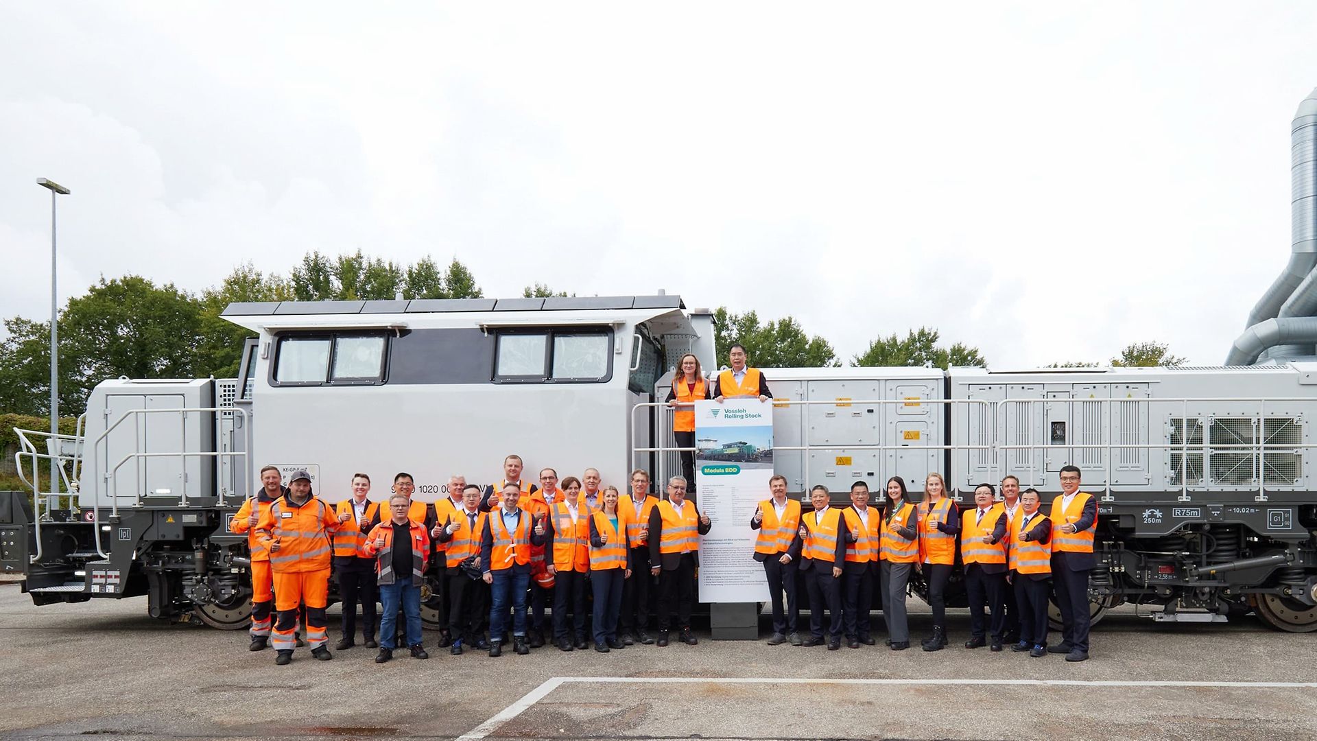 Kiel, Oktober 2025. Vossloh Rolling Stock (VR) hat an seinem Hauptstandort in Kiel-Suchsdorf gemeinsam mit Vertretern seines Mutterkonzerns CRRC ZELC und der DB Cargo AG die neuen Rangierlokomotiven der Modula-Plattform präsentiert.