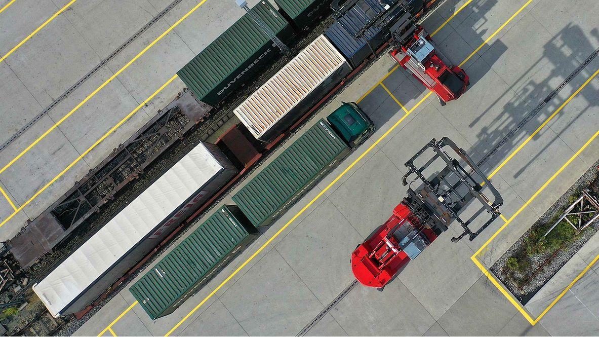 Der einst größte deutsche Rangierbahnhof Hamm (Westfalen) wird zu einem multimodalen Bahnlogistikknoten mit innovativer Verladetechnik und zum Vorzeigeprojekt für klimafreundlichen Schienengüterverkehr. Hamm gehörte 1920 zu den größten Zugbildungsanlagen Europas mit 325 Kilometern Gleis und 430 Metern Breite. Von den aktuell nicht genutzten 85 Hektar Fläche sind jetzt 60 Hektar für innovative Logistik vorgesehen. Auf diesem Areal entwickeln wir gemeinsam mit dem Land Nordrhein-Westfalen, der Stadt Hamm und der Eisenbahn- und Verkehrsgewerkschaft (EVG) Hamm-Bielefeld nun eine multimodale Logistikdrehscheibe, die die Verkehrsträger Schiene, Straße und Wasserstraße kombiniert. Der Hafen Hamm zählt zu den größten Kanalhäfen in Nordrhein-Westfalen und bringt es auf rund 500.000 Tonnen Güterverkehr auf der Schiene und rund 1,6 Millionen Tonnen Schiffsgüterumschlag pro Jahr. Das Ziel: Mehr Güter von der Straße auf die klimafreundliche Schiene zu bringen – 170.000 Lkw-Fahrten können so pro Jahr eingespart werden.
