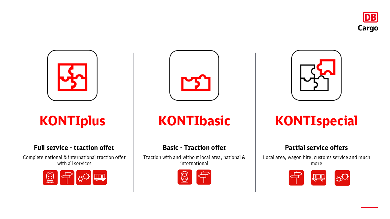 With the ongoing restructuring, the clear organizational and production structure and the KONTImodal product logic, DB Cargo is making continental CT - KONTImodal more efficient, predictable and customer-oriented. Trains are running reliably from terminal to terminal, processes are stable and customers receive tailor-made solutions from a single source - practical, transparent and implemented step by step.