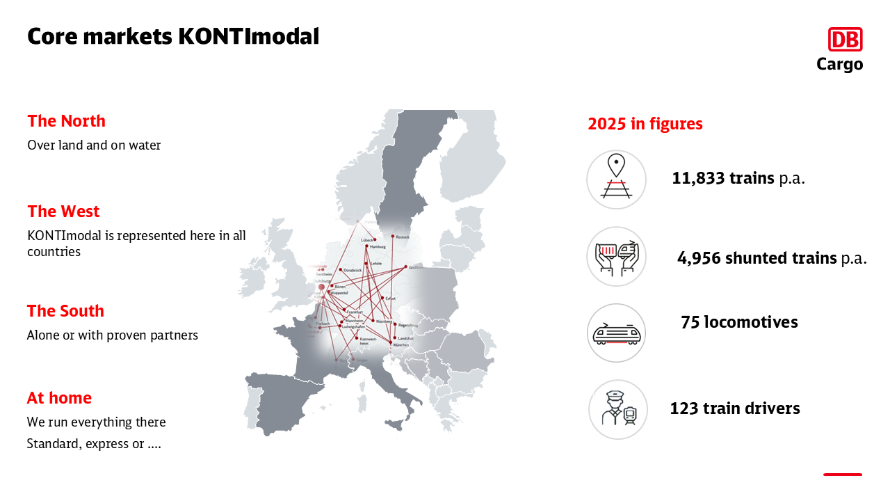 Rail logistics is changing - and DB Cargo is actively shaping this change. As part of the ongoing transformation, the structures in combined transport (CT) have been realigned. The aim is to make processes more efficient and implement customer-oriented solutions even more consistently. Since the beginning of 2025, CT has been divided into two clearly focused areas: maritime CT, which connects seaports and industrial centers, and continental CT - KONTImodal, which reliably links terminals in Germany and Europe.