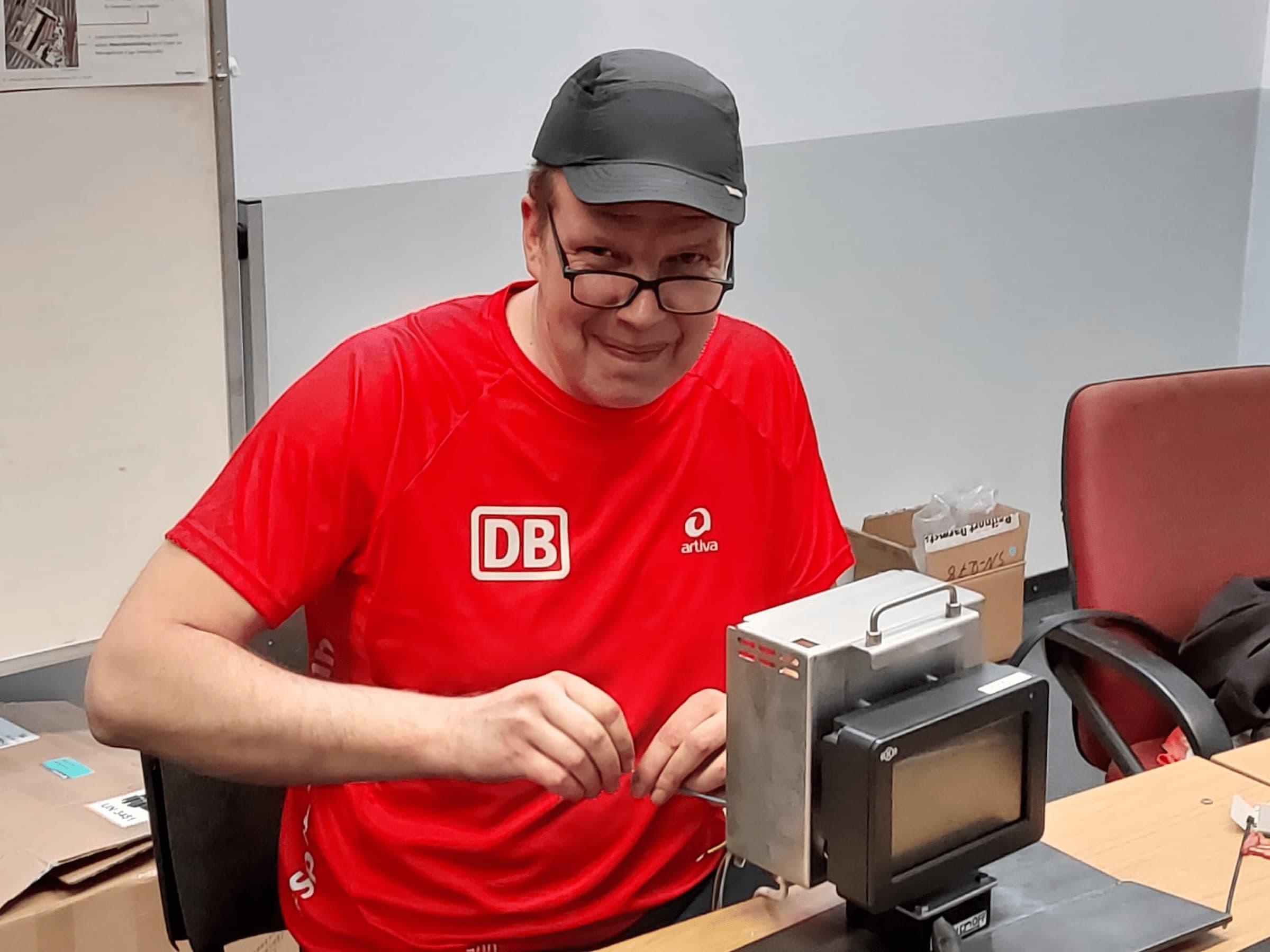 Marc Hafner building the bracket for the LEADER driver assistance system in the Saarbrücken maintenance depot.