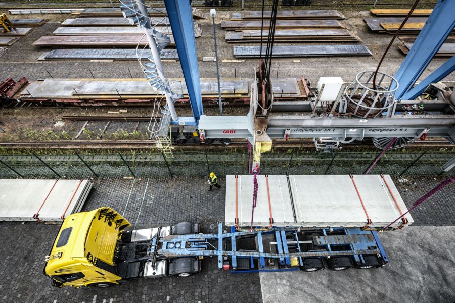 Neben einer transportbedingten Zwischenlagerung bietet das Logistikzentrum in Darmstadt auf insgesamt 10.000m², davon 5600m² beheizt, zusätzlich Kapazitäten für die Lagerung von Gütern aller Art. Neben Umschlag und Lagerung in der Lagerhalle, bietet das Logistikzentrum zudem die Möglichkeit Ihre Güter im Freien mithilfe eines 40-Tonnen Portalkrans umzuschlagen. Auf insgesamt 180m Gleisen können sowohl Stahlerzeugnisse, wie Grobbleche und Träger für den Projektbau, als auch Container und Wechselbrücken von der Straße auf die Schiene gebracht und so dem europäischen Schienennetz zugeführt werden.